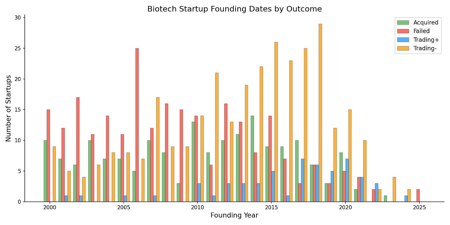 Nice work here. The flyover state finding is brutal but makes sense given how hard it is to recruit senior biotech talent outside hubs. Curious if the "Trading-" bucket might hide successful pivots that haven't recovered market cap yet, they'd look indistinguishable from slow failures in this data. Phase III IPO sweet spot probably reflects survivorship bias too.