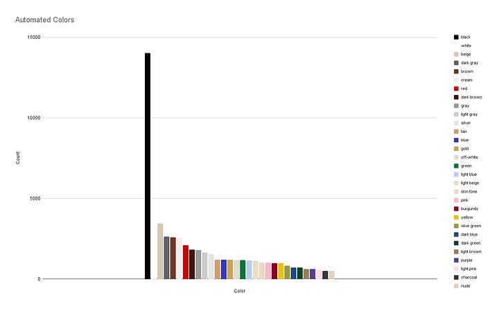 So this means the “count” for each color is the number of times GPT4o observed it, across all images; if it mentions a black hat and a black dress in the same image, for instance, that counts as two.