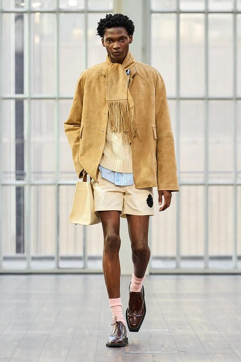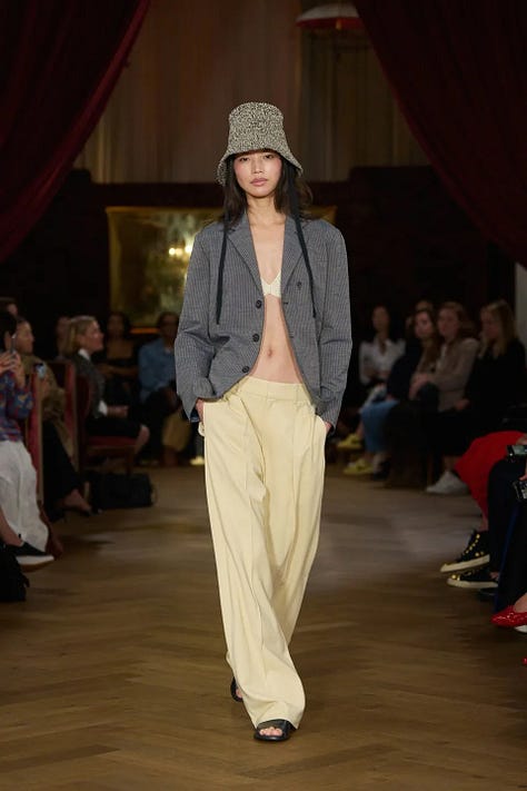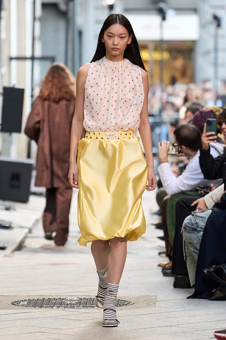 To the extent that there are recurrent themes in the SS26 season, we’re looking at pastels, preppiness, and generally cautious/conservative choices; these are both visible to me and echoed in Vogue’s editorial coverage.