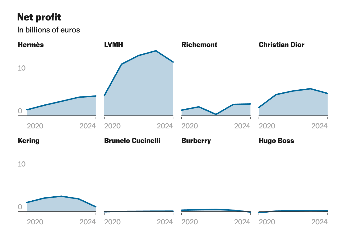 2024 saw total luxury goods spending down 2%, with many brands seeing profit drops: