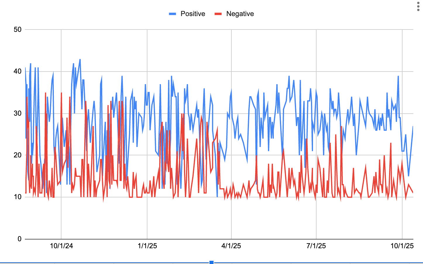 Seriously, check out this PANAS score graph and how negative affect just plummets in spring 2025 and mostly stays way down from the previous baseline. If not “fun” exactly, then definitely 2025 was a banner year for happiness.