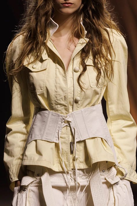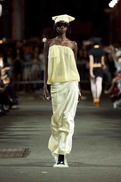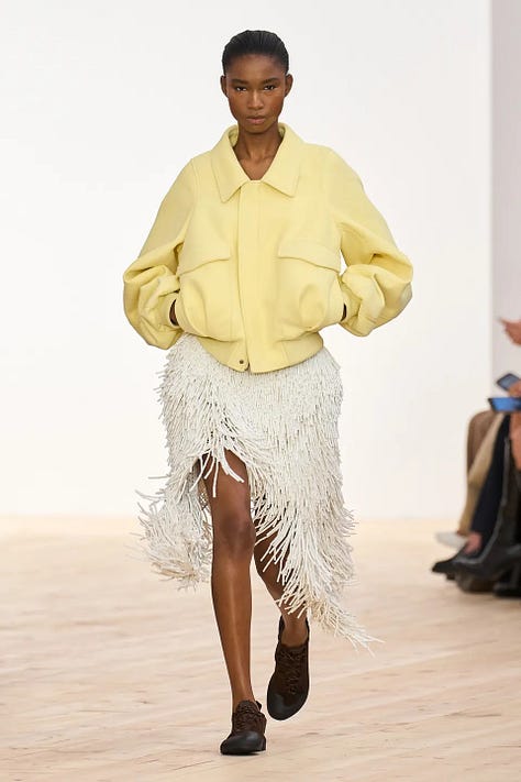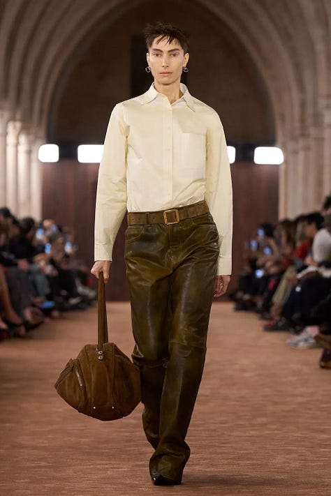 When consumers pull back on luxury spending, fashion collections tend to reflect a swing “back to basics” — safer choices, less eccentricity. We are definitely not in the post-pandemic spending boom of 2021 when wacky, tropical-hued party clothes were ascendant. We’re also not seeing a lot of explicit political-statement collections, despite the Trump presidency; if anything, the fashion world seems to be in retreat from current events.